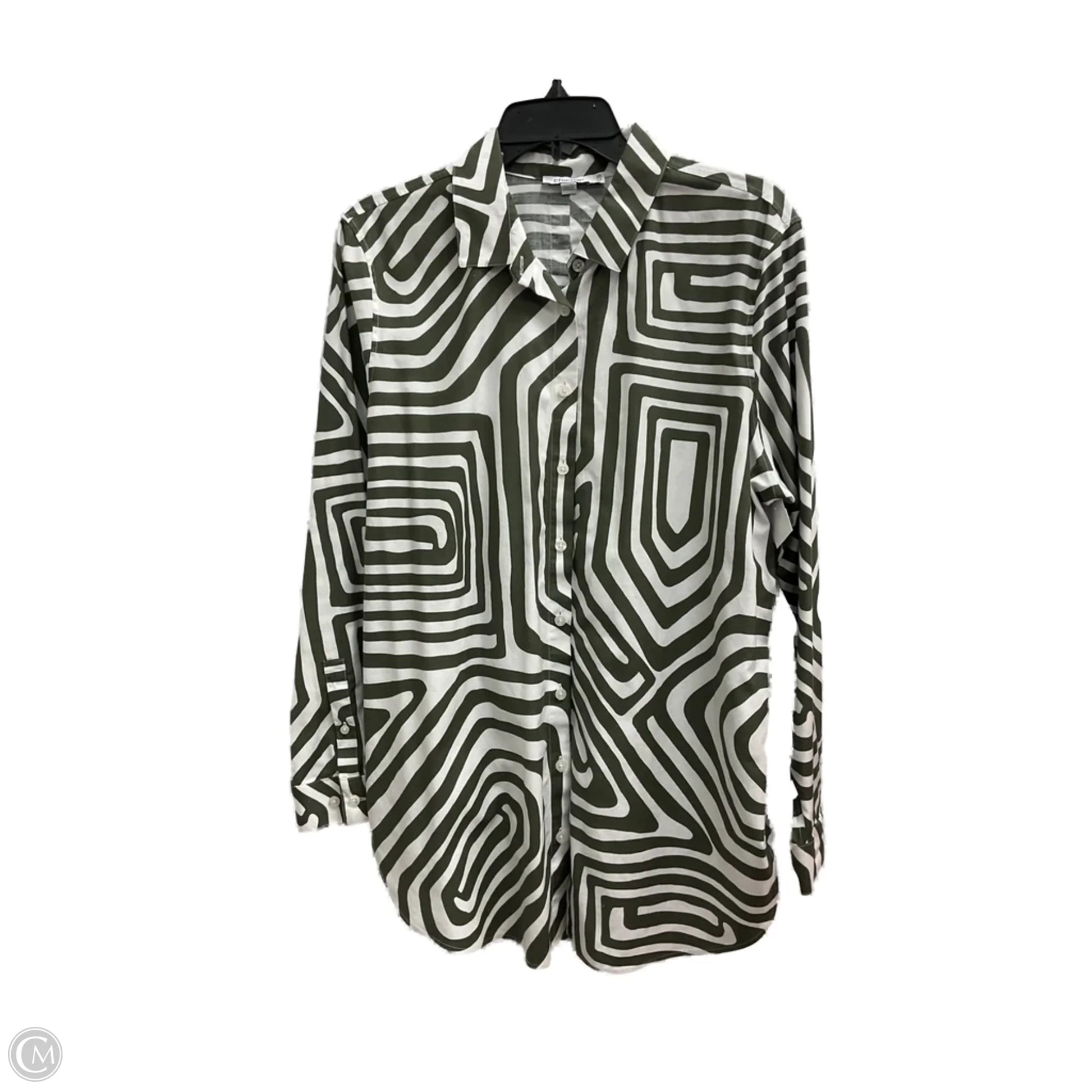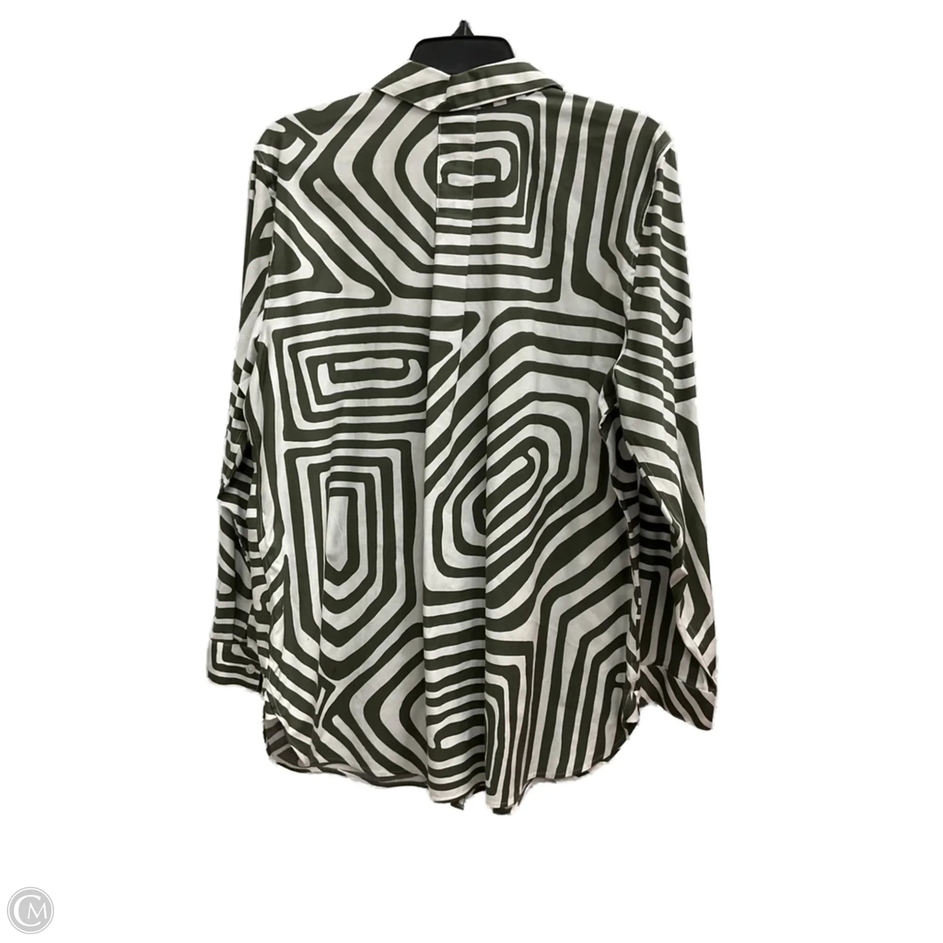 Blouse Long Sleeve By Chicos In Green & White, Size: 14